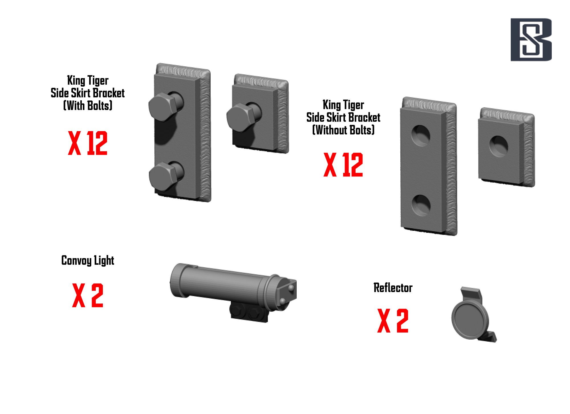 BSK Model[BSKC35026]1/35 WWII ドイツ キングタイガー/ヤークトタイガー サイドスカートブラケット/車間表示灯/反射灯セット(2両分入) [ご注文締切日 3月18日(水)4月入荷予定]