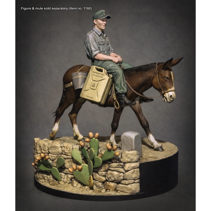 直径6cmの円形ベースです。地面、石造りの壁、小さな道標のある平坦な地面で、3Dプリント製のサボテンも付属します。同スケールのドイツ兵やイタリア兵などのフィギュアに最適なベースです。