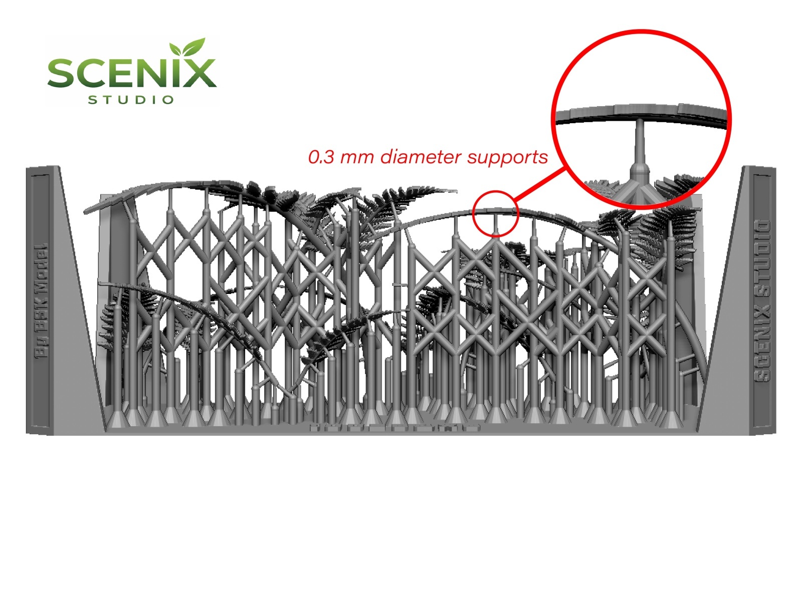 植物のシダの葉を再現するジオラマアクセサリーです。3Dプリントならではの高い表現力により、葉や枝を立体的かつリアルに再現しています。通常の植生表現のほか、戦車や車両の偽装にも使用可能です。PET製ケース入(4×8×2cm、5g、厚さ0.25mm)で、チャック付き収納袋(7×8cm)