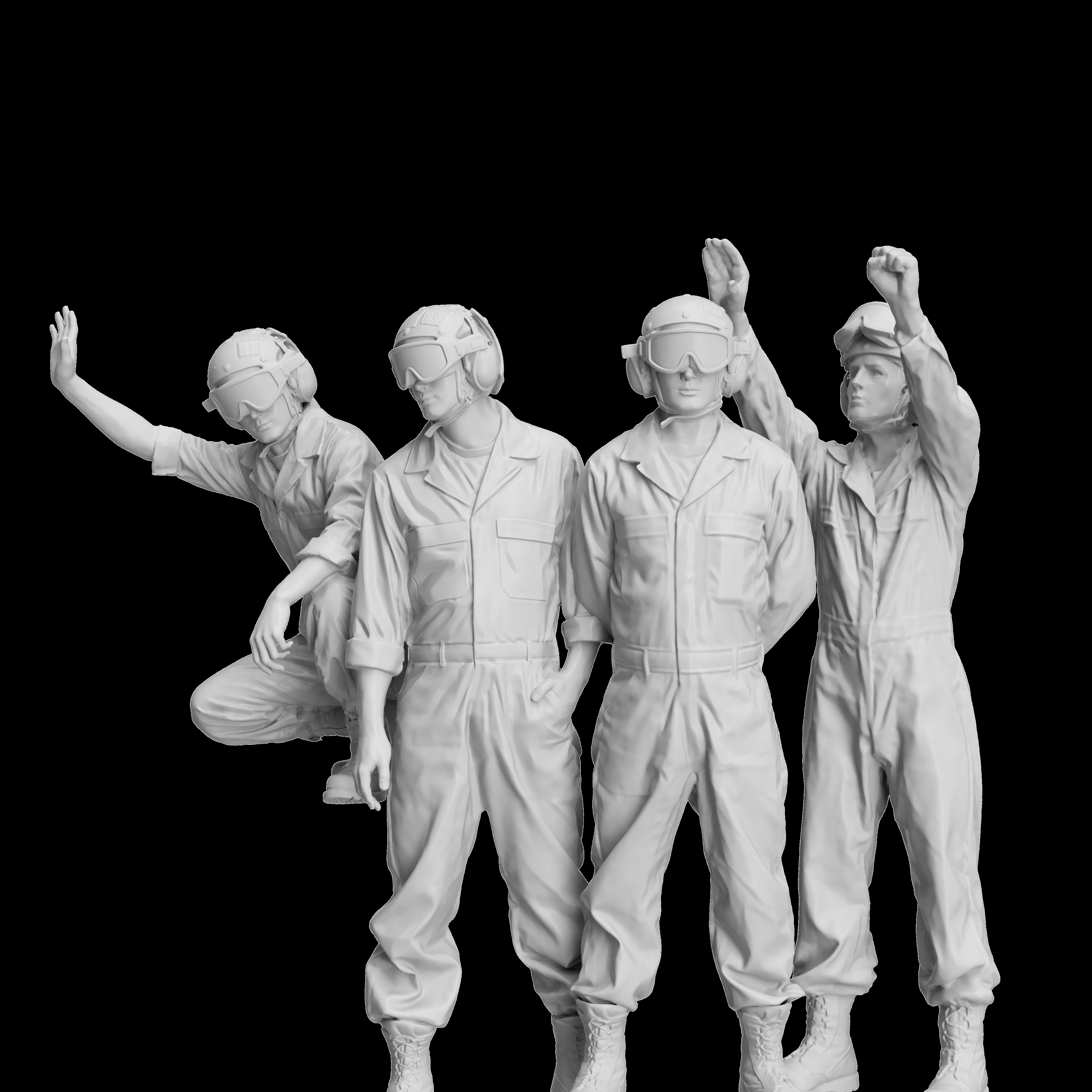 4種類の作業員を、3Dプリントの一体成型で精密に再現します。同スケールのF-35BライトニングII戦闘機、F/A-18C/Dホーネット戦闘機、AV-8BハリアーII攻撃機、AH-1Wスーパーコブラ攻撃ヘリコプターなどの傍らに配置するだけで、生き生きとしたジオラマを展開できるでしょう。