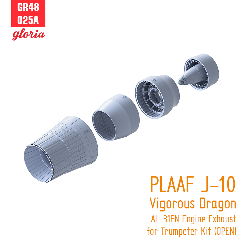 中国人民解放軍空軍(PLAAF)が運用するJ-10ヴィゴラスドラゴン戦闘機に搭載されるAL-31FNエンジンの排気ノズルをリアルに再現する3Dプリント製ディテールパーツです。トランペッター製キットに対応します。