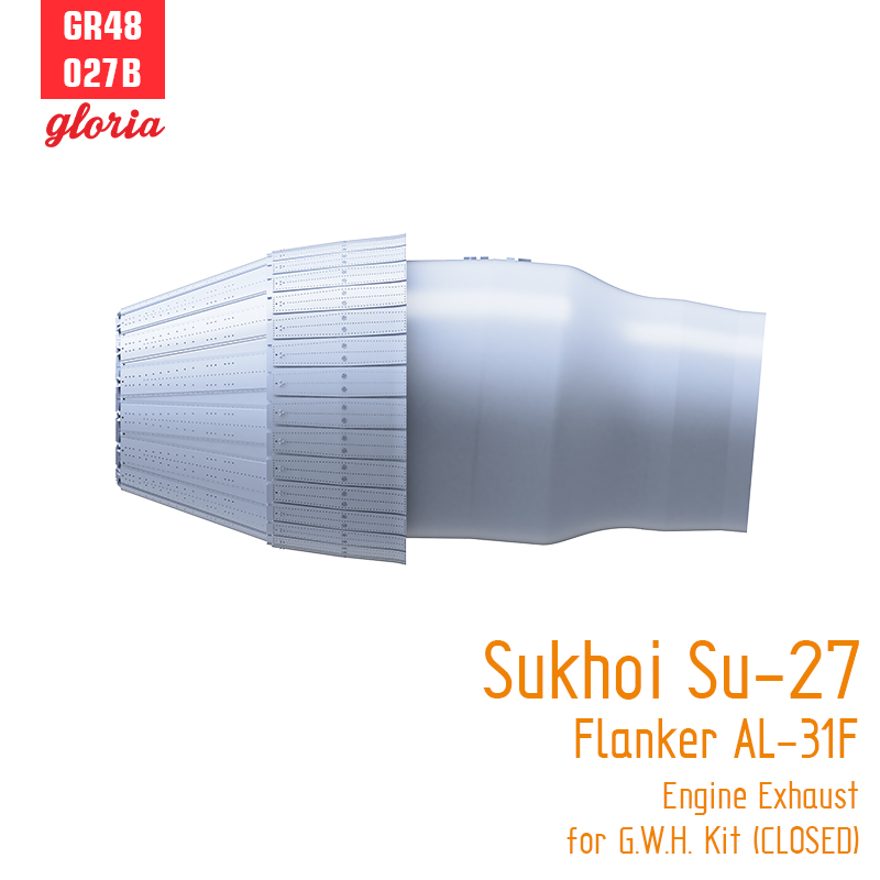 旧ソ連/ロシアが運用するスホーイSu-27フランカー戦闘機に搭載されるAL-31Fエンジンの排気ノズルをリアルに再現する3Dプリント製ディテールパーツです。グレートウォールホビー製キットに対応します。