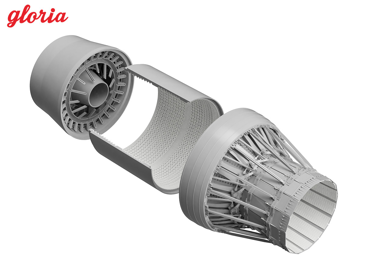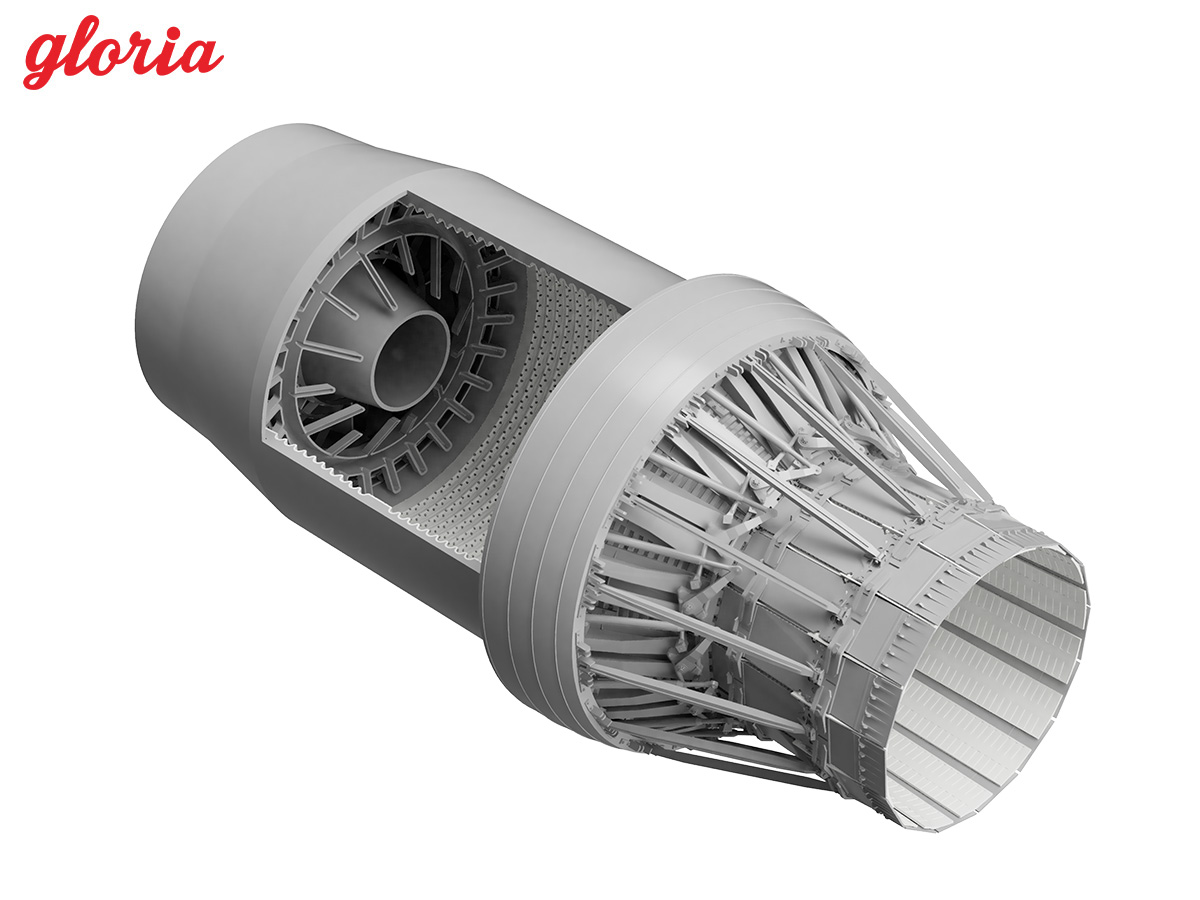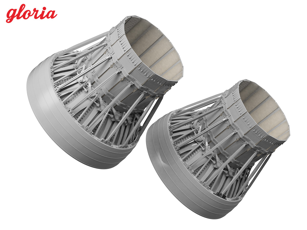 アイリスプレートを外し、ノズルを絞った閉状態をモデル化し、1機分となる2個をセットしています。ノズル奥のアフターバーナー部分も複数パーツで精密に再現しています。