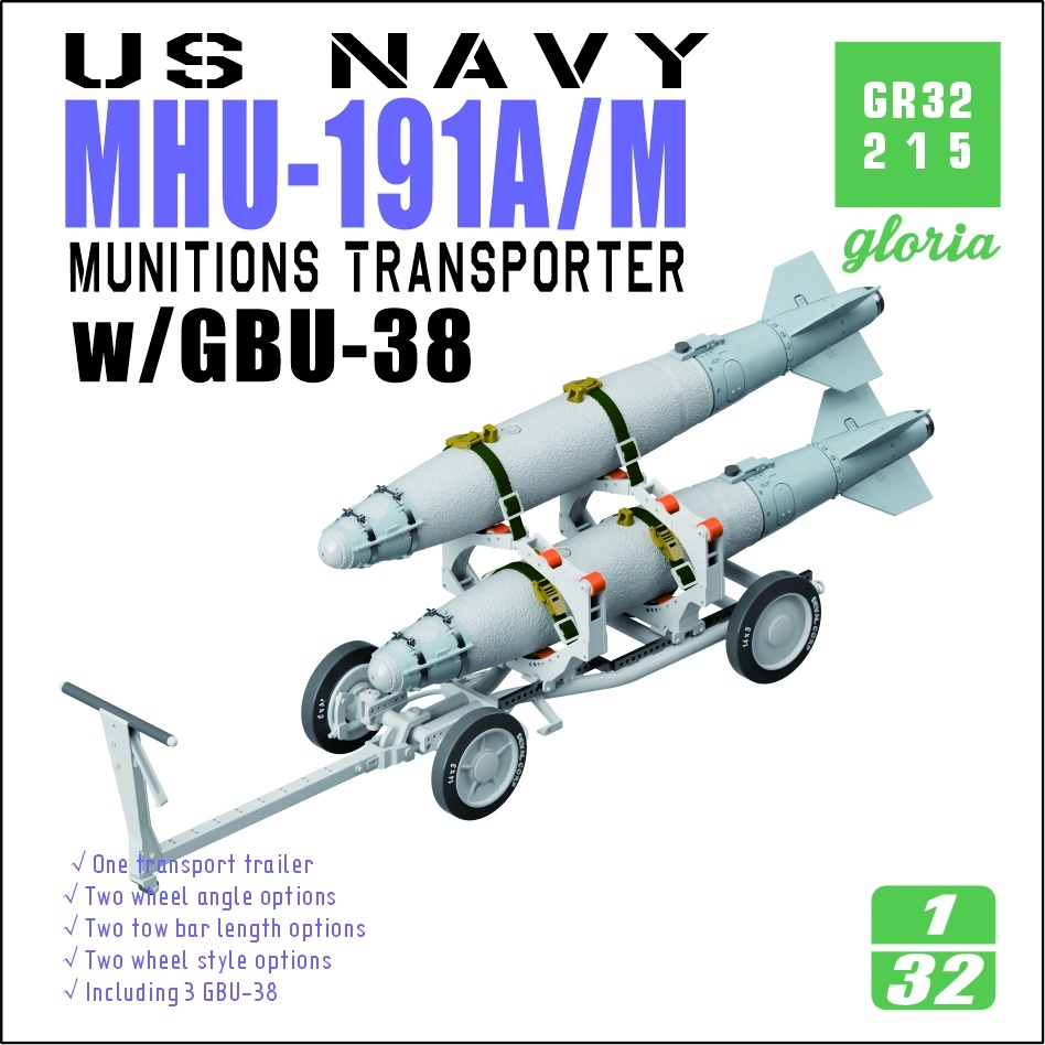 E.T.MODEL[GR32215]1/32 現用 アメリカ海軍 MHU-191A/M弾薬運搬車 w/GBU-38 500ポンド爆弾 [ご注文締切日 5月1日(金)7月入荷予定]