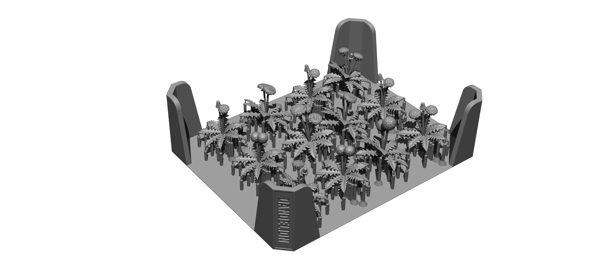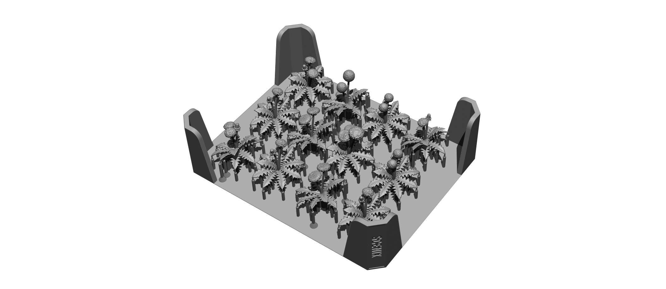耐久性に優れた柔軟な素材で精密にプリントされ、葉と花は一体成型されています。製品とサポート材のつなぎ目はわずか0.3mm径なので、ベースプレートを曲げたりひねったりすることでサポート材から自然に取り外し、そのままジオラマなどに配置が可能です。