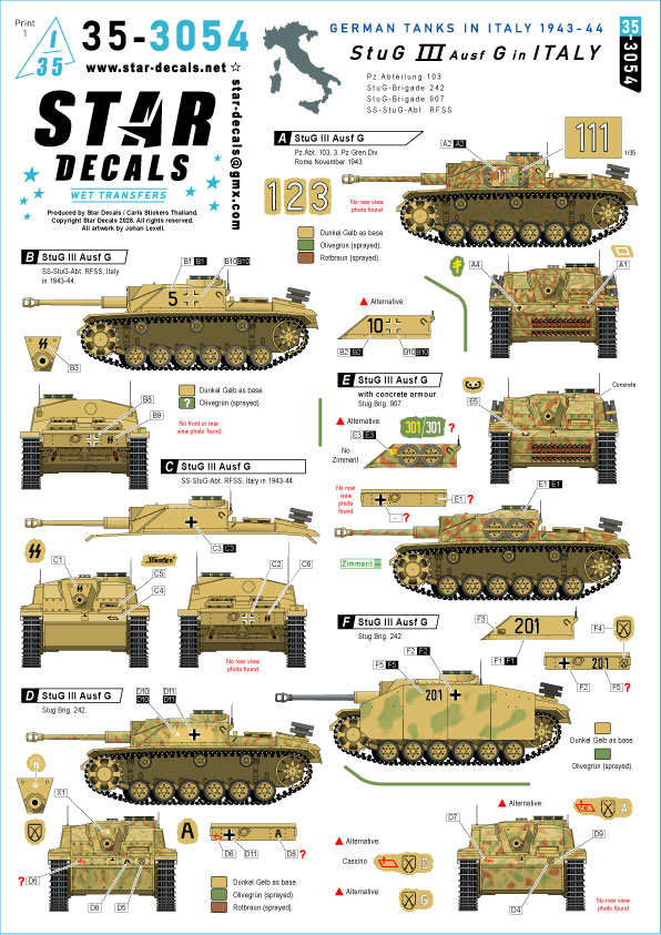 STAR DECALS[SD35-3054]1/35 WWII ドイツ イタリア戦線のIII号突撃砲G型 第103戦車大隊/第242突撃砲旅団/第907突撃砲旅団/SS突撃砲大隊RFSS [ご注文締切日 5月1日(金)6月入荷予定]