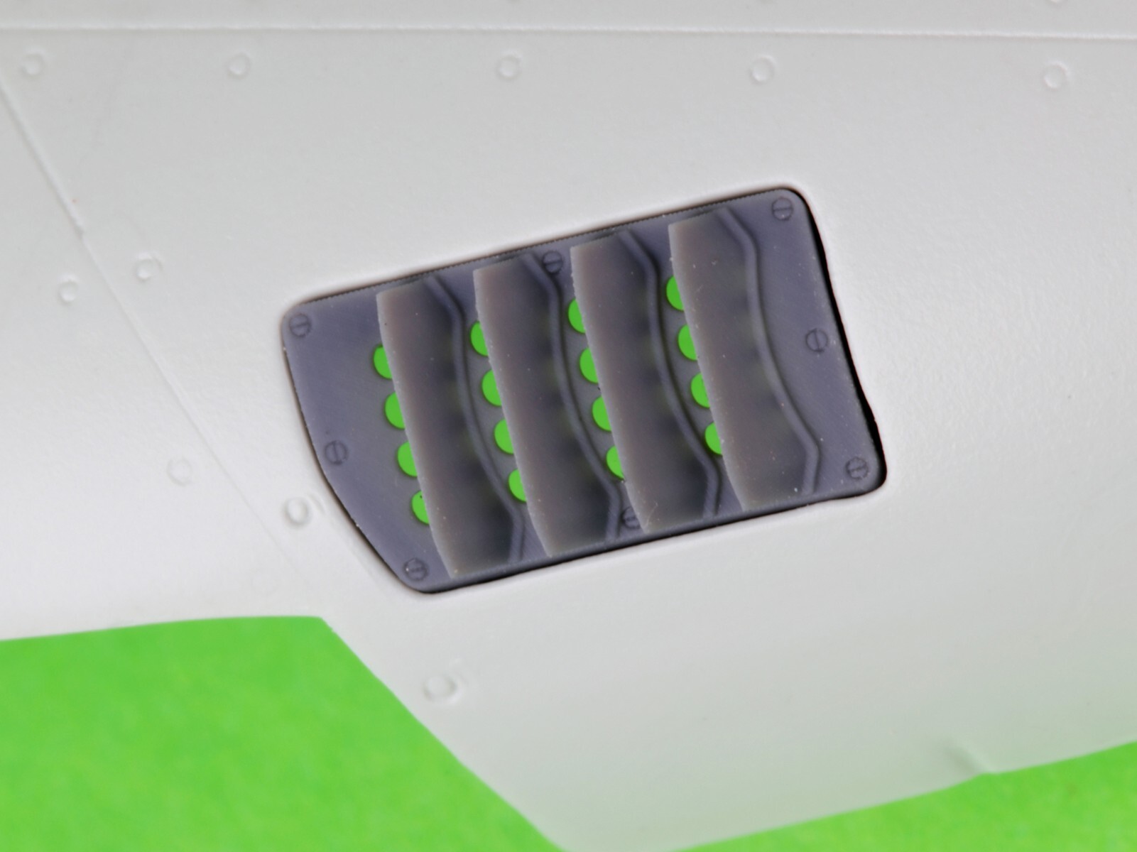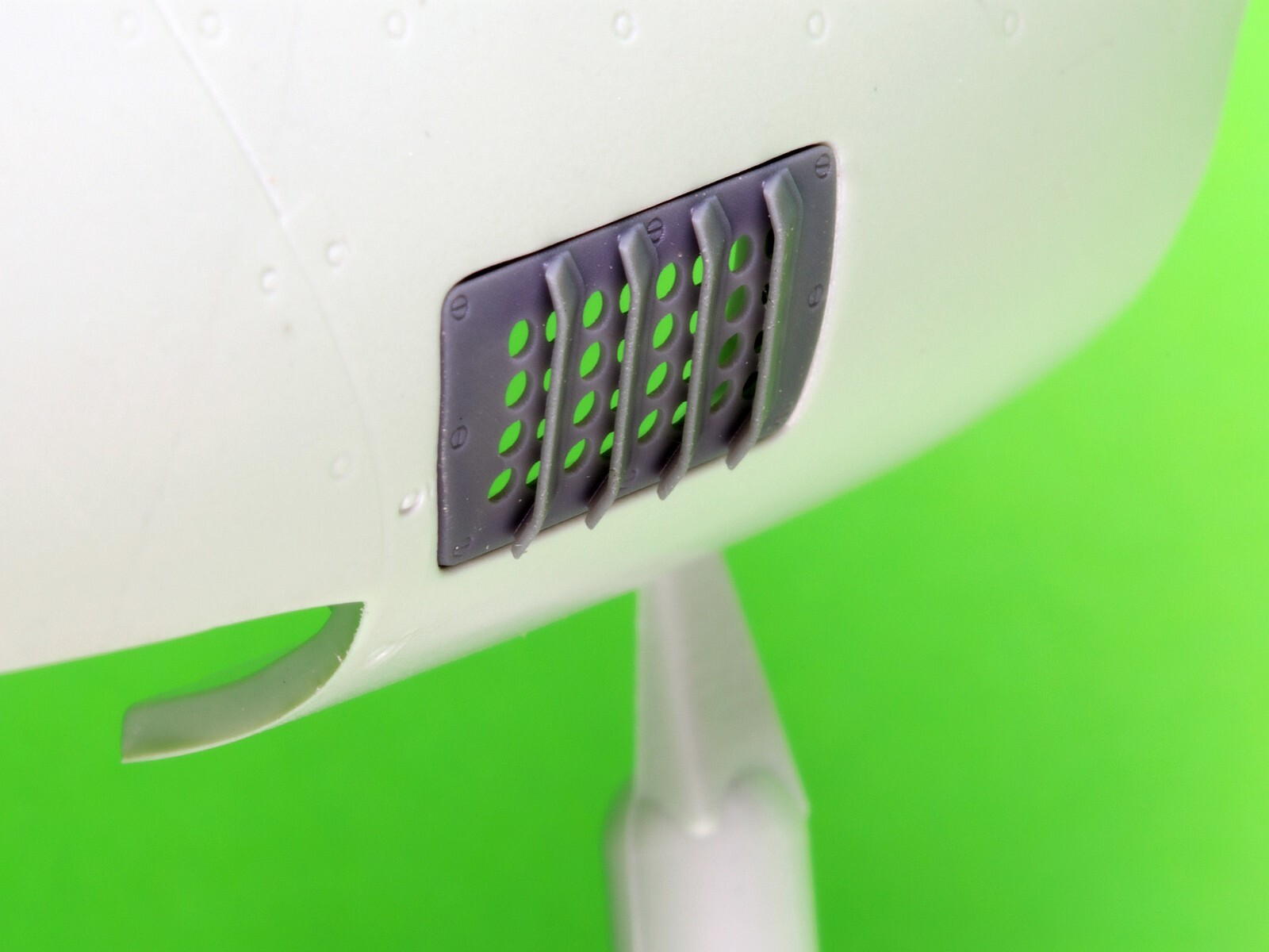 バージョンBでは、イギリス空軍(RAF)機に見られる4枚の長いエラ状のルーバーが追加されたタイプを再現しています。