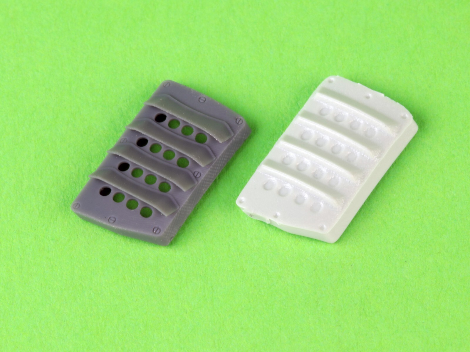 第二次大戦アメリカ軍のP-51ムスタング戦闘機の機首下部左右のキャブレターエアフィルターカバーパネルを再現するディテールパーツです。レベル製キットに対応します。