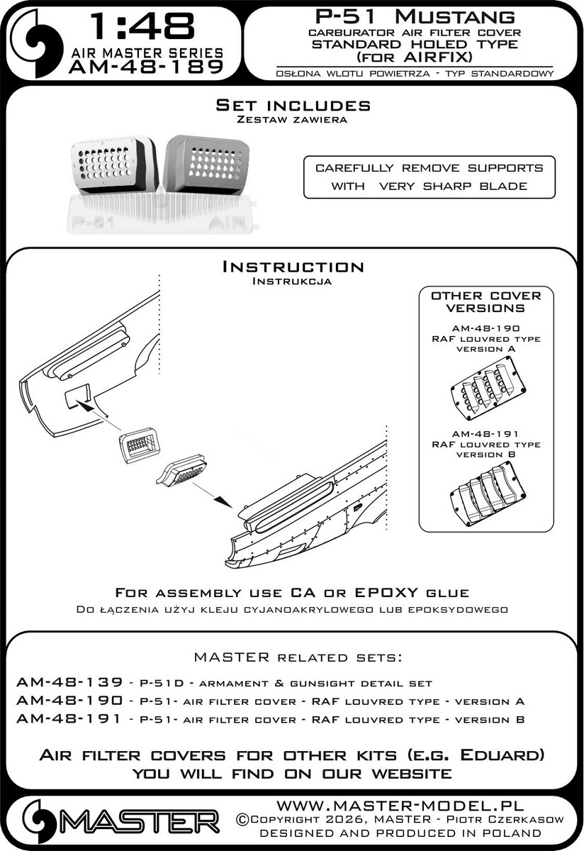 MASTER[AM-48-189]1/48 WWII アメリカ P-51ムスタング キャブレターエアフィルターカバー 標準穴開きタイプ(エアフィックス用) [ご注文締切日 5月22日(金)6月入荷予定]