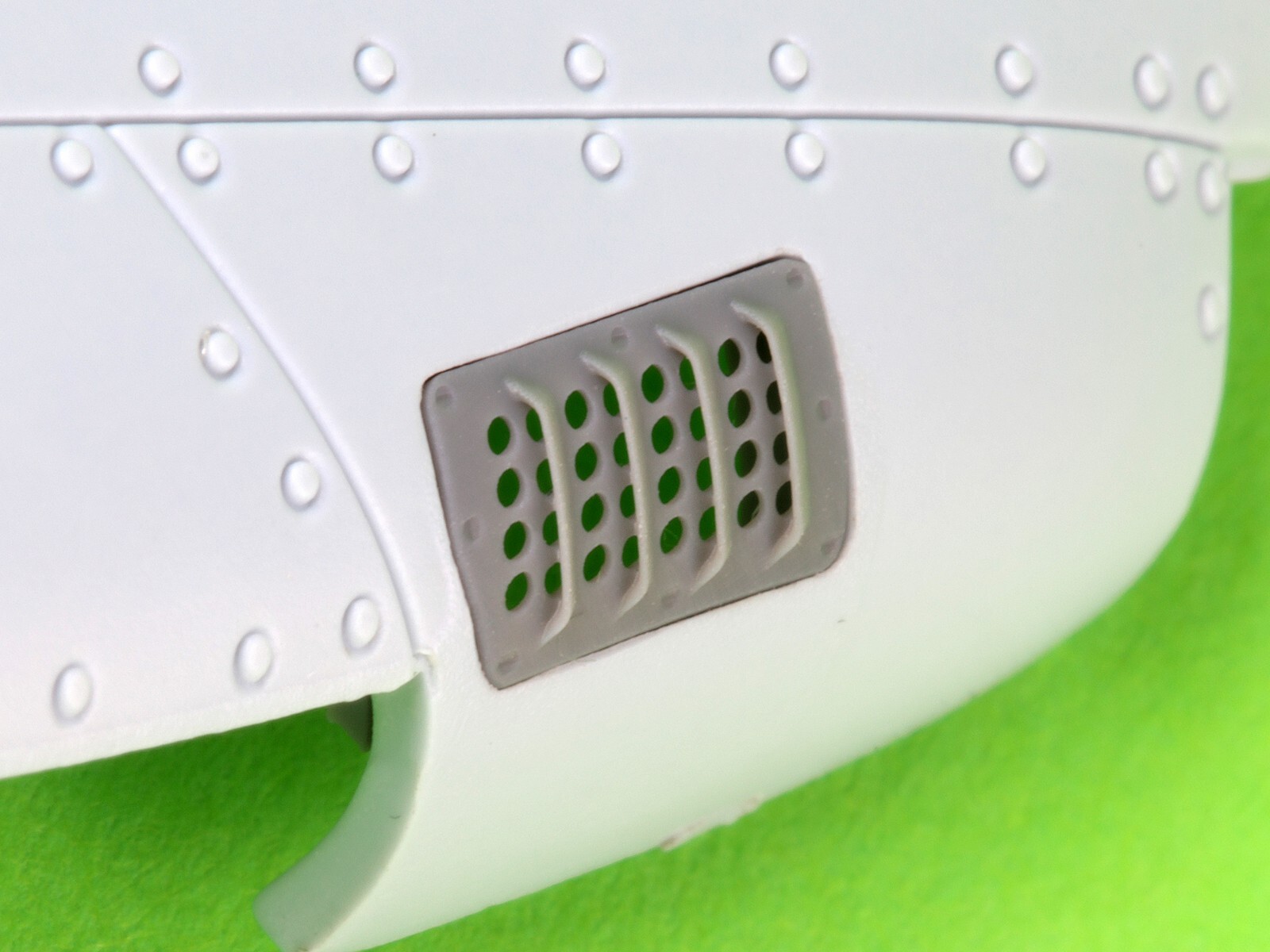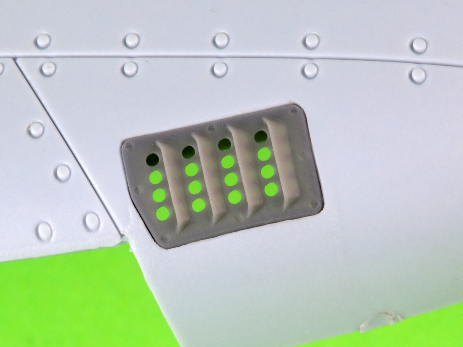 バージョンAでは、イギリス空軍(RAF)機に見られる4枚の短いエラ状のルーバーが追加されたタイプを再現しています。