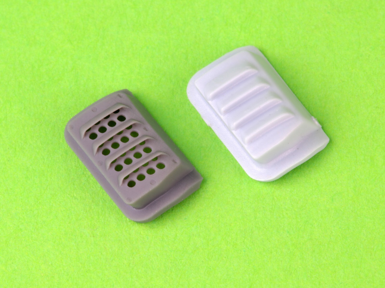 第二次大戦アメリカ軍のP-51ムスタング戦闘機の機首下部左右のキャブレターエアフィルターカバーパネルを再現するディテールパーツです。エアフィックス製キットに対応します。