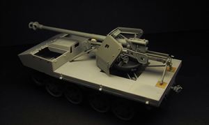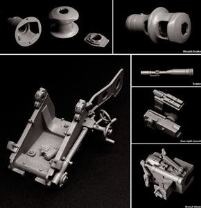 勿論、揺架や砲尾部も同様に 精度とディティールを両立。 砲身自体はアルミ製でマズル ブレーキは流行りの分割 方式をレジンならではの 仔細なディティールを再現。